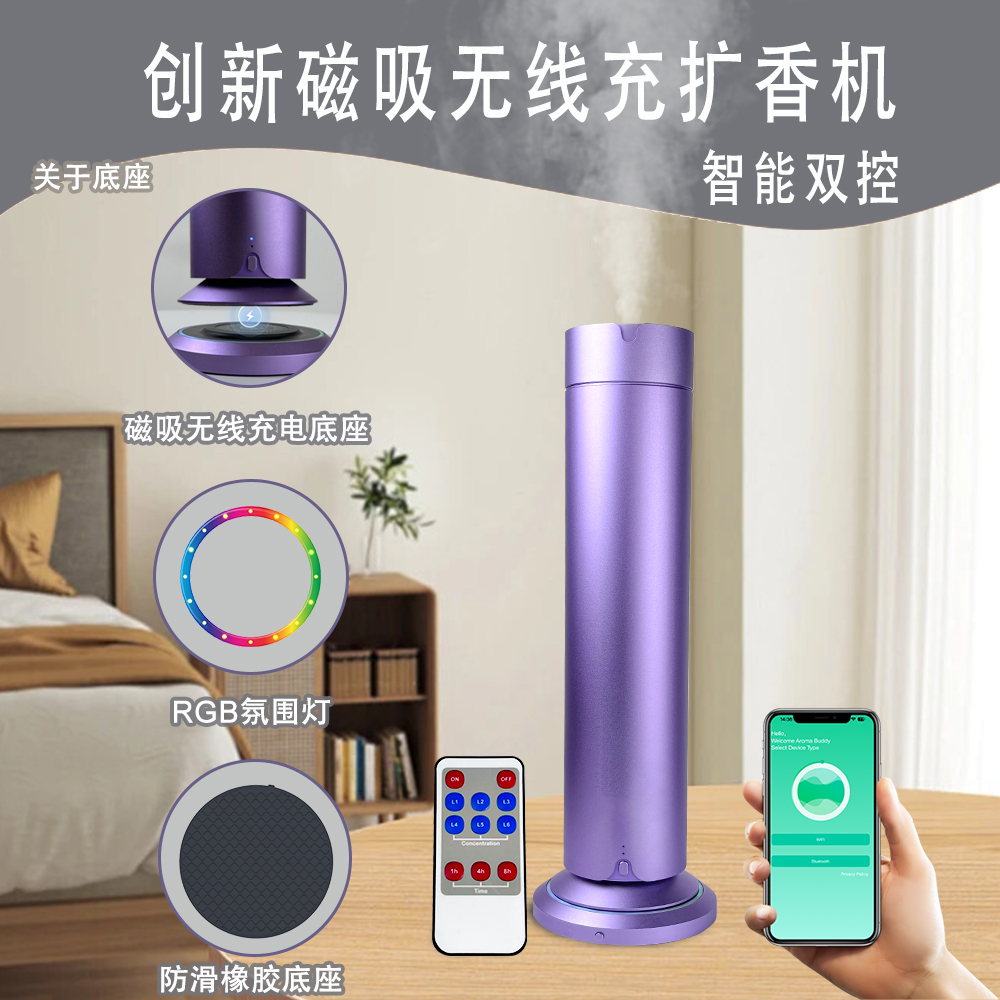 操作上配备蓝牙 App 与遥控器双重控制系统,可远程调节出香浓度与灯光模式,用户体验更加便捷智能。七彩氛围灯光系统柔和自然,可营造安静、舒适的空间氛围,特别适合办公、卧室、SPA馆、高端接待区等多场景使用。