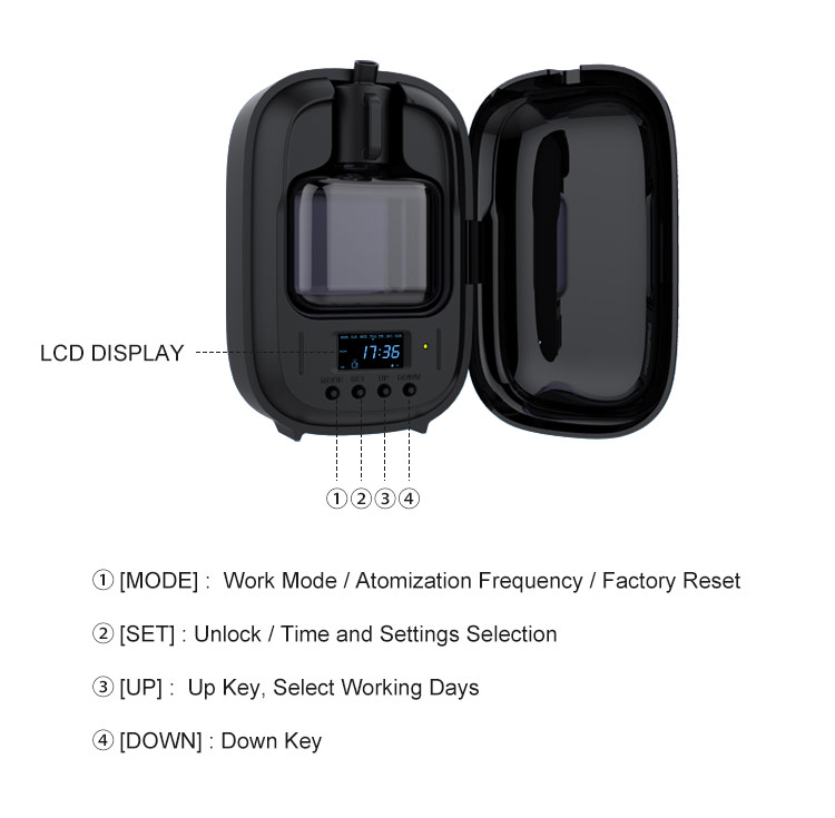 Designed for small to medium spaces, this minimalist aroma diffuser combines smart technology with efficient two-fluid atomization. Whether placed on a table or wall-mounted, it delivers consistent fragrance with ultra-low noise and modern aesthetics—ideal for offices, and boutique retail spaces.