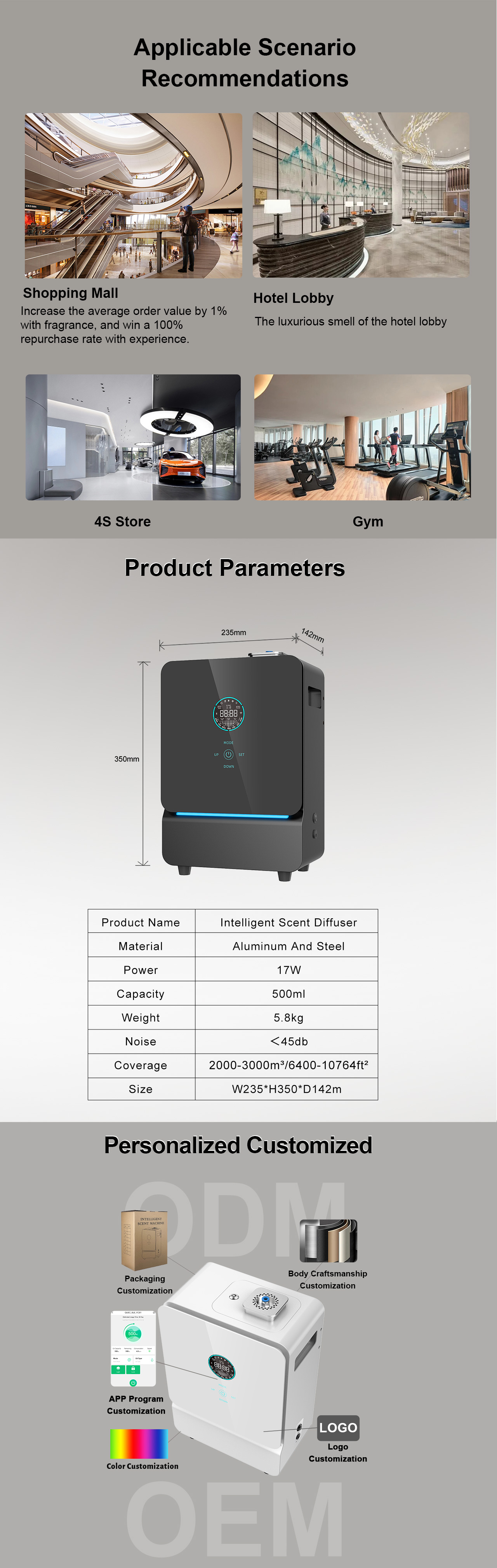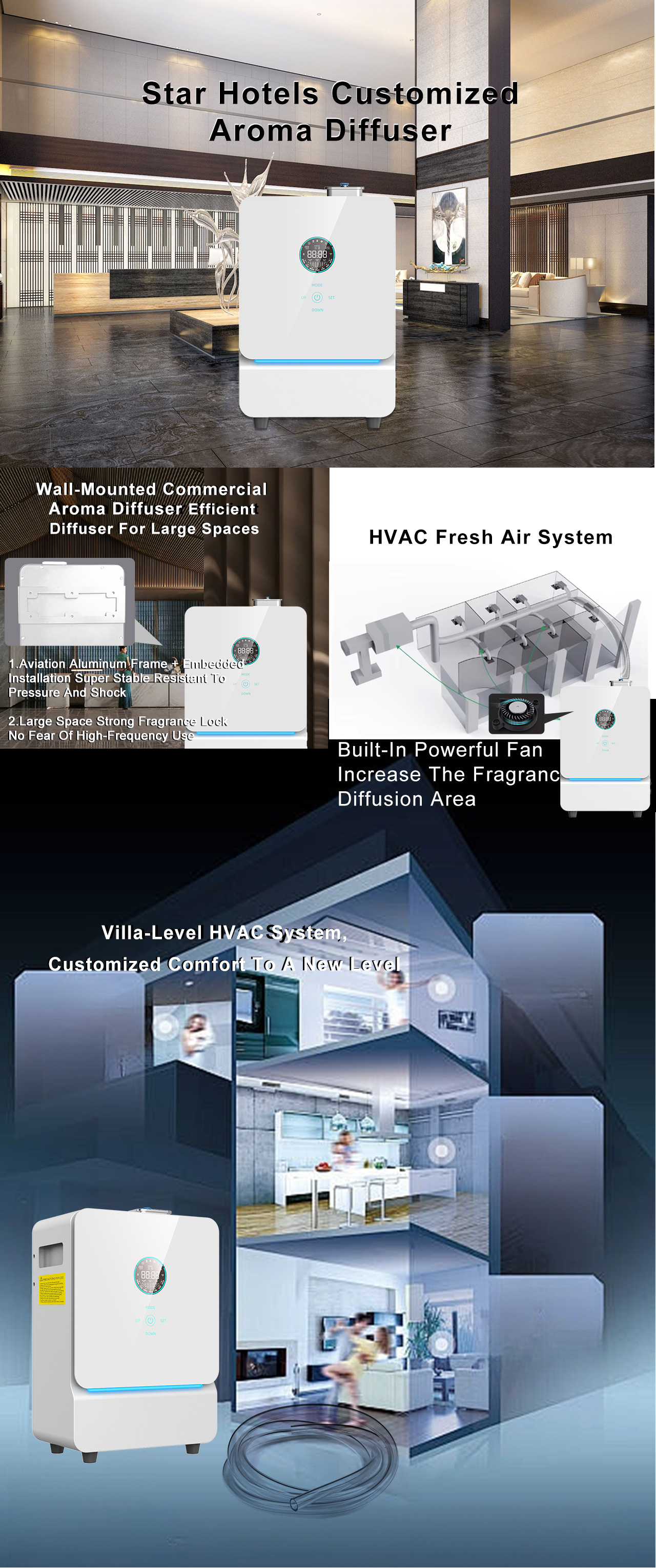 Commercial Grade WiFi Controlled Large-Area Intelligent HVAC Smart Aroma Diffuser for Hotel Lobbies, Offices, Shopping Malls, and Public Spaces