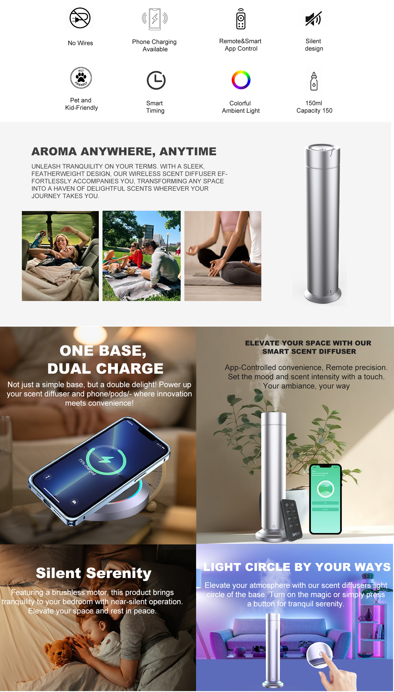· 150ml Large Capacity – For consistent aroma coverage