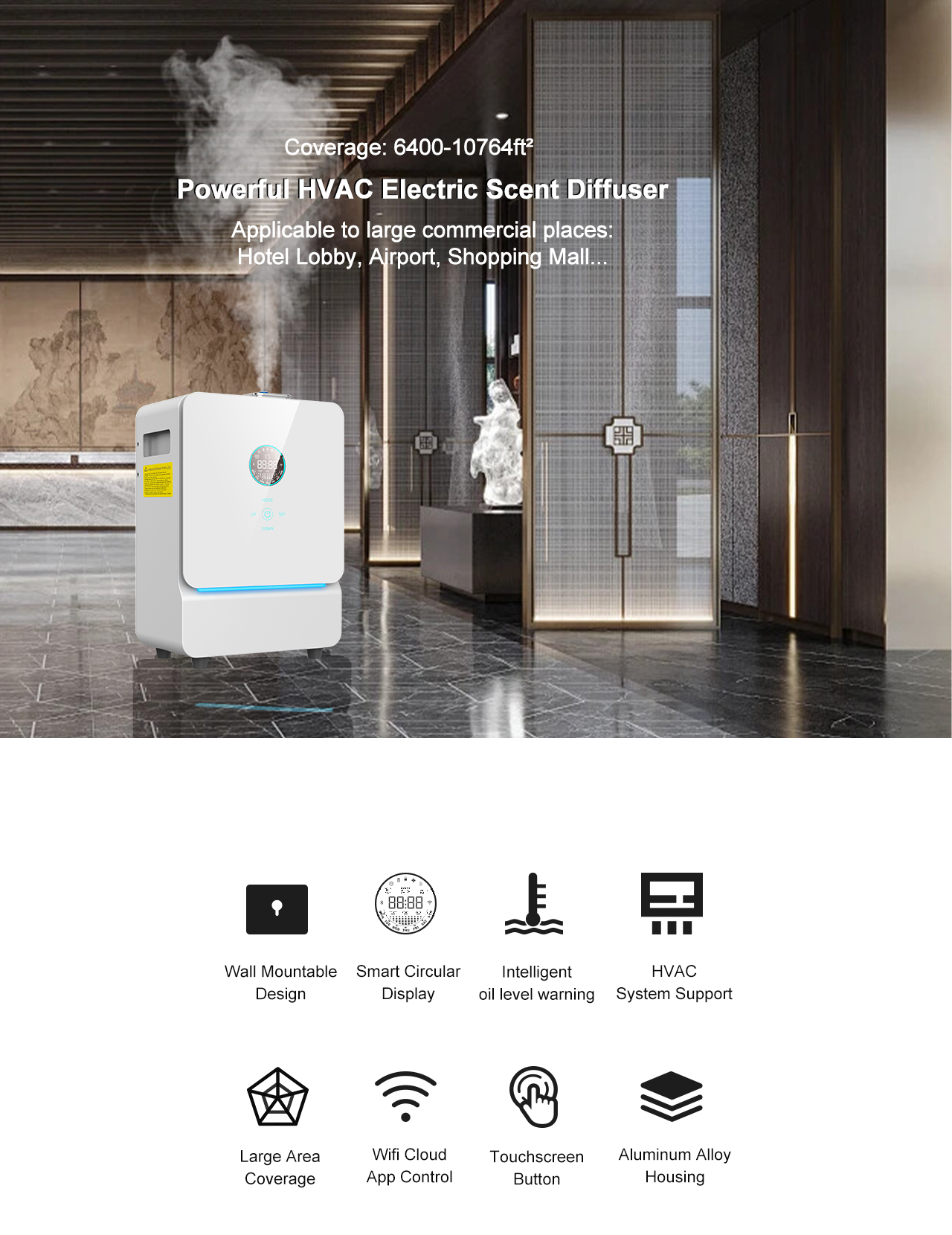 · Commercial HVAC Aroma Diffuser – Ideal for large-area installations (600–1000㎡)